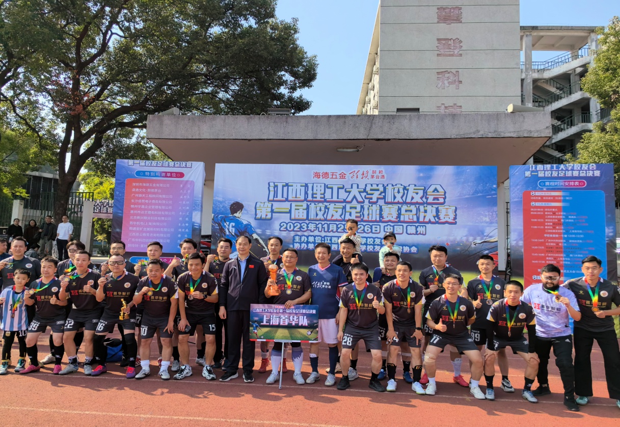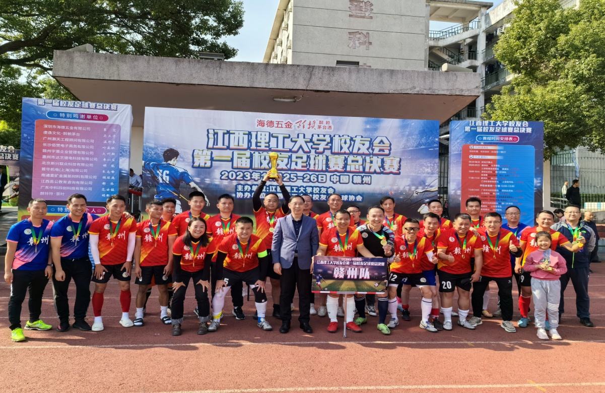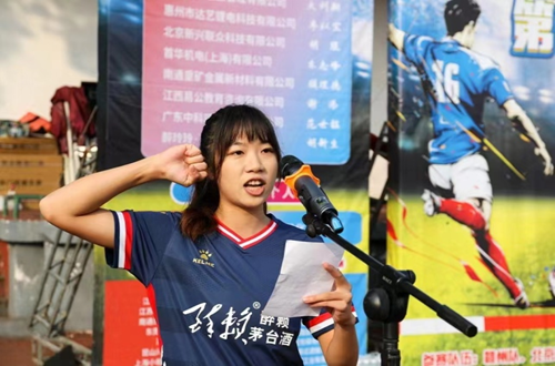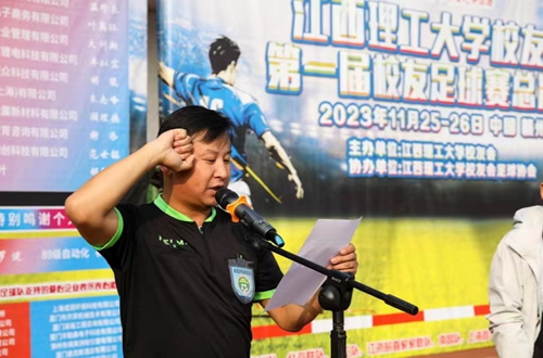 龚姚腾代表学校宣布江西理工大学校友会第一届校友足球赛总决赛开赛。