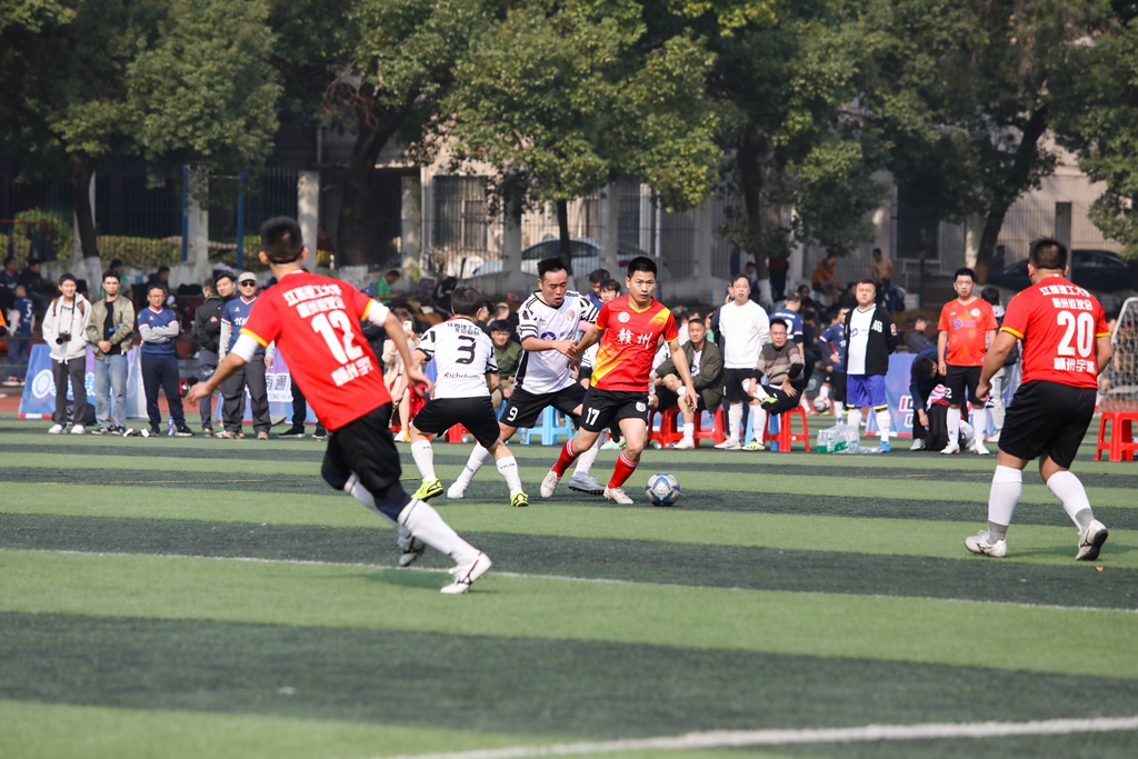 据了解,本届校友足球赛自今年4月开始筹办,中间经历了粤港澳大湾区校友足球邀请赛、长三角地区校友足球邀请赛等赛事,最后成功会师江西理工大学举办总决赛。总决赛赛制分为小组赛和淘汰赛两个阶段,九支队伍通过抽签分为三个小组,小组赛采用单循环赛制,其中胜利一方积3分,失利一方得0分。为了增加赛事观赏性,在常规比赛时间内未分出胜负则进行点球大战,点球获胜方积2分,点球失利方积1分。为了增进校友之间的了解,组委会在主体比赛的空隙安排了友谊交流赛,其中45岁以上年龄组的友谊赛备受关注。