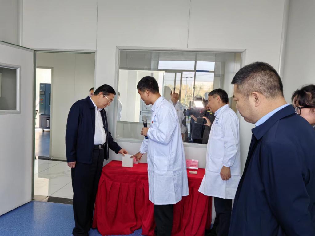 在样品陈列室,秦义听取了研究院执行副院长张骞对研究样品的来源及功能的介绍,重点听取了利用锂渣制造人工砂最新成果的介绍。
