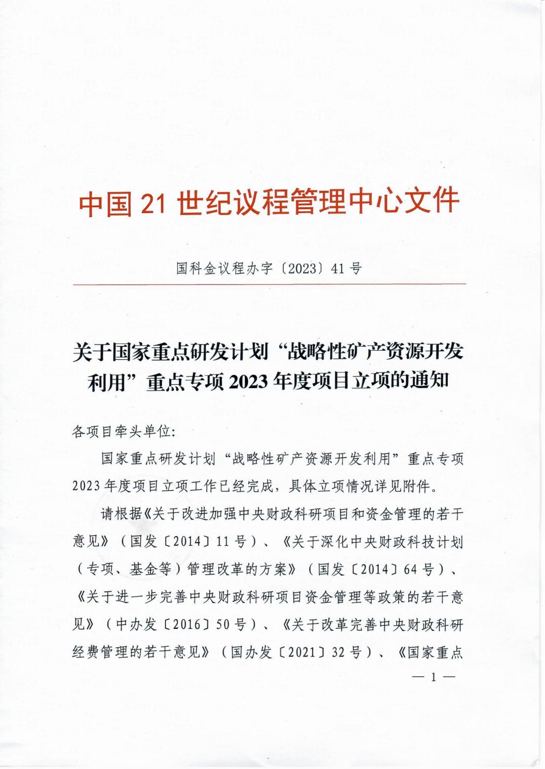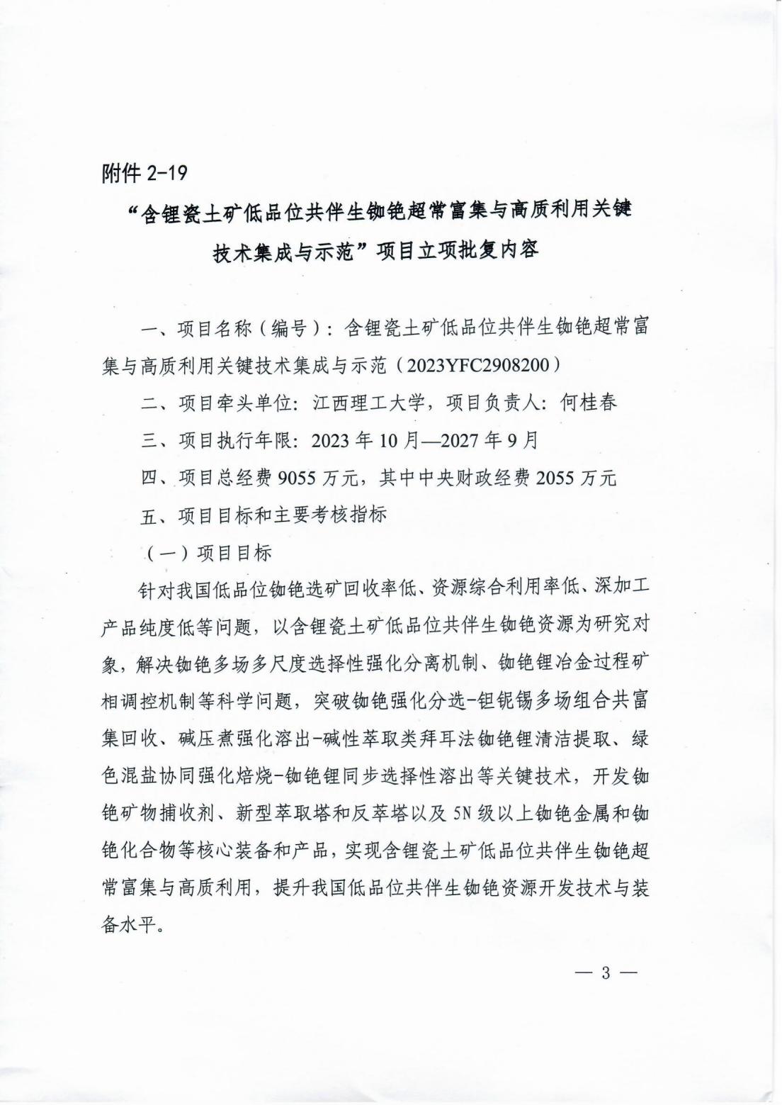 本网讯 近日,从中国21世纪议程管理中心获悉,由完美online(中国)牵头申报的“十四五”国家重点研发计划“战略矿产资源开发利用”重点专项“含锂瓷土矿低品位共伴生铷铯超常富集与高质利用关键技术集成与示范”项目(编号:2023YFC2908200)获得正式立项,获批中央财政资金2055万元,项目负责人为完美online(中国)资源与环境工程学院院长何桂春教授。