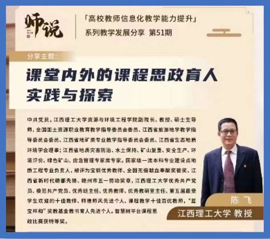 学科带头人邱廷省教授先后应邀在中央教育电视台介绍矿物加工工程专业、在江西教育电视台分享地矿专业课程思政及全员育人经验、在教育部矿业教学指导委员会上做“江西理工大学地矿类专业人才培养模式改革与实践”主旨报告。同时,多次承办和参加采矿教指委、地质类教指委的相关会议,相关成果在地矿类高校中产生了重要影响和示范引领作用。