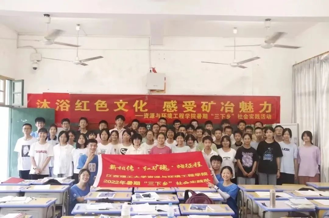 挖掘整合省内矿业类单位及企业资源,与铁山城钨矿 (共和国第一国企)、西华山钨矿等企业协同建立“红色+矿治”思政教育基地。通过“三下乡”践行社会主义核心价值观,“三下乡”暑期社会实践队足迹遍布赣州50余个社区、企业和乡村。