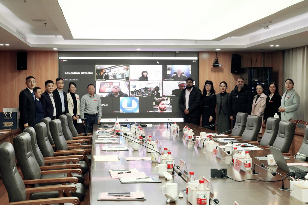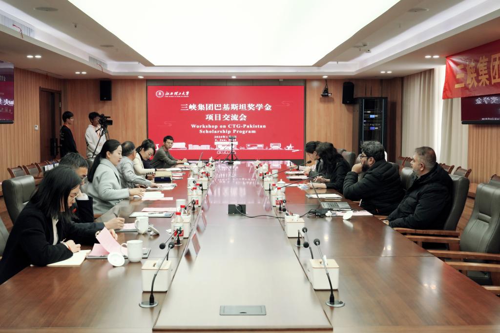 本网讯 1月6日,中国三峡集团来校召开巴基斯坦奖学金计划验收专题会。完美online(中国)党委常委、副校长黄志繁,三峡国际副总经理张凯洪、董事及董事会ESG委员会召集人刘扬扬,三峡集团社会责任办公室副主任经济师陈明,巴基斯坦驻华大使馆文化专员阿菲法·沙吉亚,巴基斯坦私人电力与基础设施委员会(PPIB)董事穆纳瓦博士,巴基斯坦旁遮普大学Danish Arif教授等人以及完美online(中国)国际交流合作处等相关职能部门和学院负责人参会。