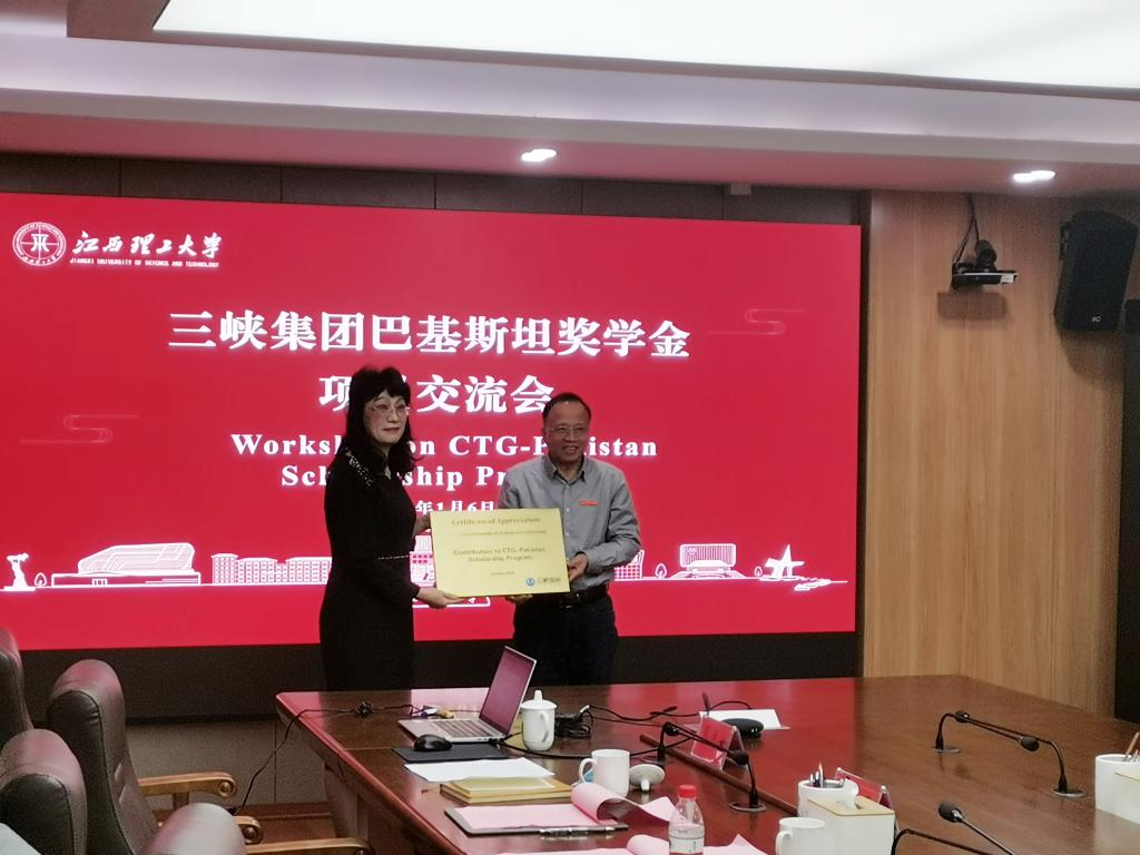 最后,三峡集团授予江西理工大学、旁遮普大学、江西理工大学电气工程与自动化学院、旁遮普大学孔子学院杰出工作纪念牌。
