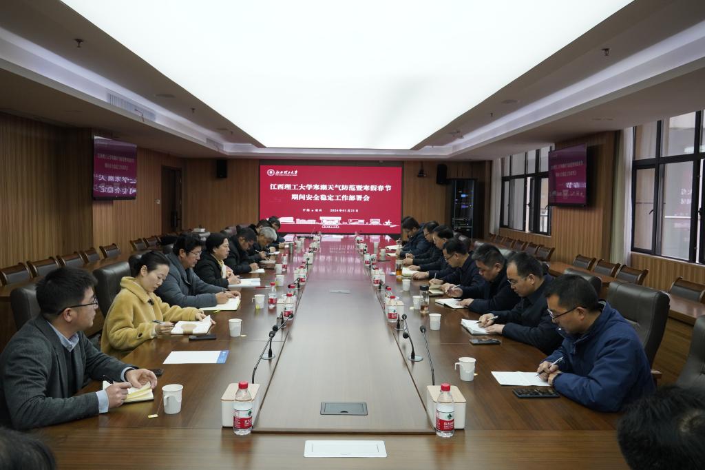 本网讯 1月21日,完美online(中国)在三江校区濂溪楼三楼2号会议室召开寒潮天气防范暨寒假春节期间安全稳定工作部署会,校党委书记杨斌主持会议并讲话,校党委常委、副校长熊志华及相关职能部门负责人出席会议。