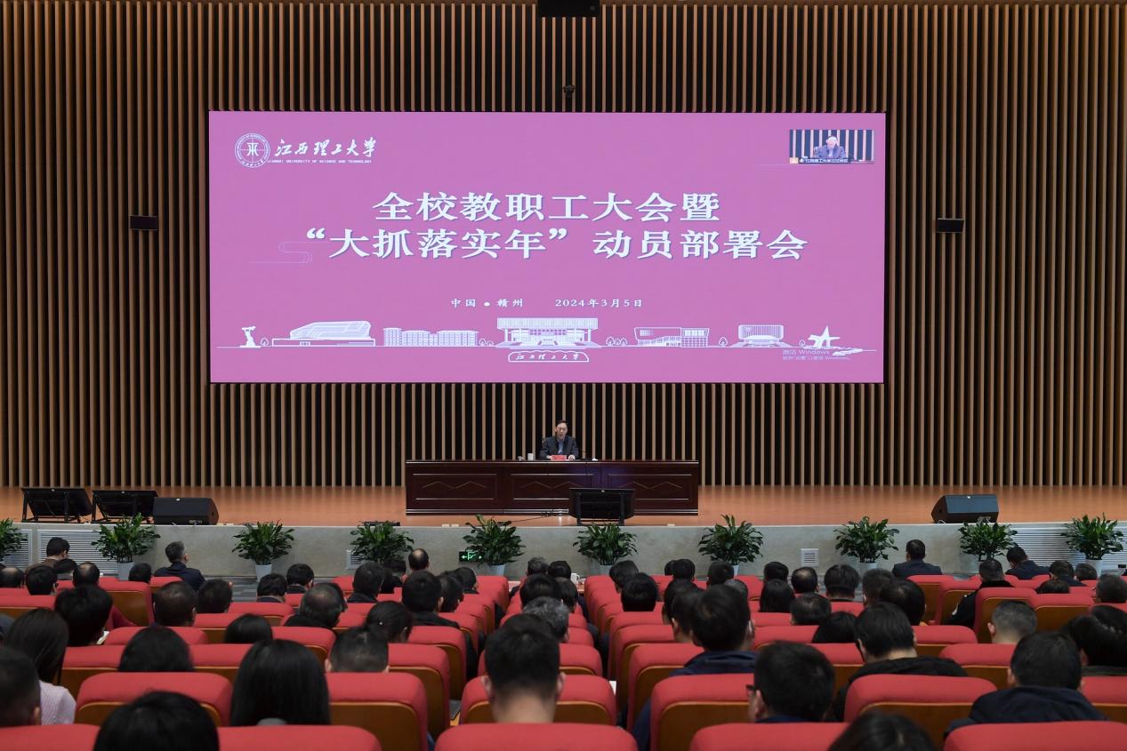杨斌指出,2024年,学校将“以建设高水平行业特色大学为引领,深入实施一流学科培优行动,力争在大平台建设、大人才引育、大项目申报、大奖项培育等方面实现新跨越,全面推进一流学科建设”为中心,围绕“以扎实做好巡视整改为抓手,全面大抓学校工作落实,不断提升党建引领学校高质量发展的水平;以教育数字化、特色化、国际化发展为抓手,全面做好本科教育教学审核评估整改工作,持续提升本科人才培养质量;以加快推进成果转移转化为驱动,主动对接国家战略和江西省制造业重点产业链现代化建设‘1269’行动计划,提升服务国家战略和江西重点产业发展贡献度;以贯彻落实教育家精神为引领,加强师德师风教育和高层次人才队伍建设,全面提升师资队伍综合素质水平;以学生心理健康集中攻坚行动为契机,深入落实做细学生心理健康与安全教育,切实提高学生教育管理工作成效”五个重点,做好“党建引领、学校治理、人才培养、科学研究、人才队伍、社会服务、综合保障、民生实事”八个方面工作。