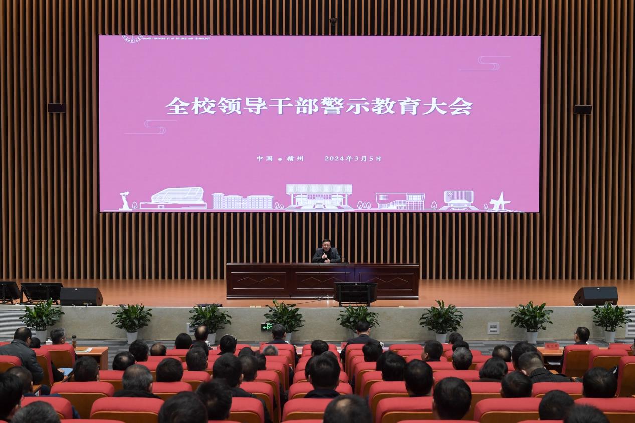 会议第二阶段进行了全校领导干部警示教育大会。全体在家校领导、党委常委以及全体处级干部集中观看了警示教育片。