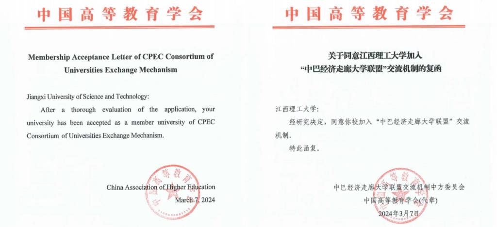 学校加入“中巴经济走廊大学联盟”交流机制,将进一步促进江西理工大学与巴基斯坦高校、学术机构、科研院所、中资企业、华人华侨团体之间的多领域、深层次合作与交流。借助“中巴经济走廊大学联盟”交流机制,学校将进一步拓宽与联盟成员间的合作空间、争取相关支持,不断深化与巴基斯坦在冶金工程与技术、材料科学与工程、国际中文教育和法律等方面的合作,高质量推进中巴经济走廊建设,努力为服务“一带一路”沿线国家的经济发展和教育科技文化交流贡献江理智慧。