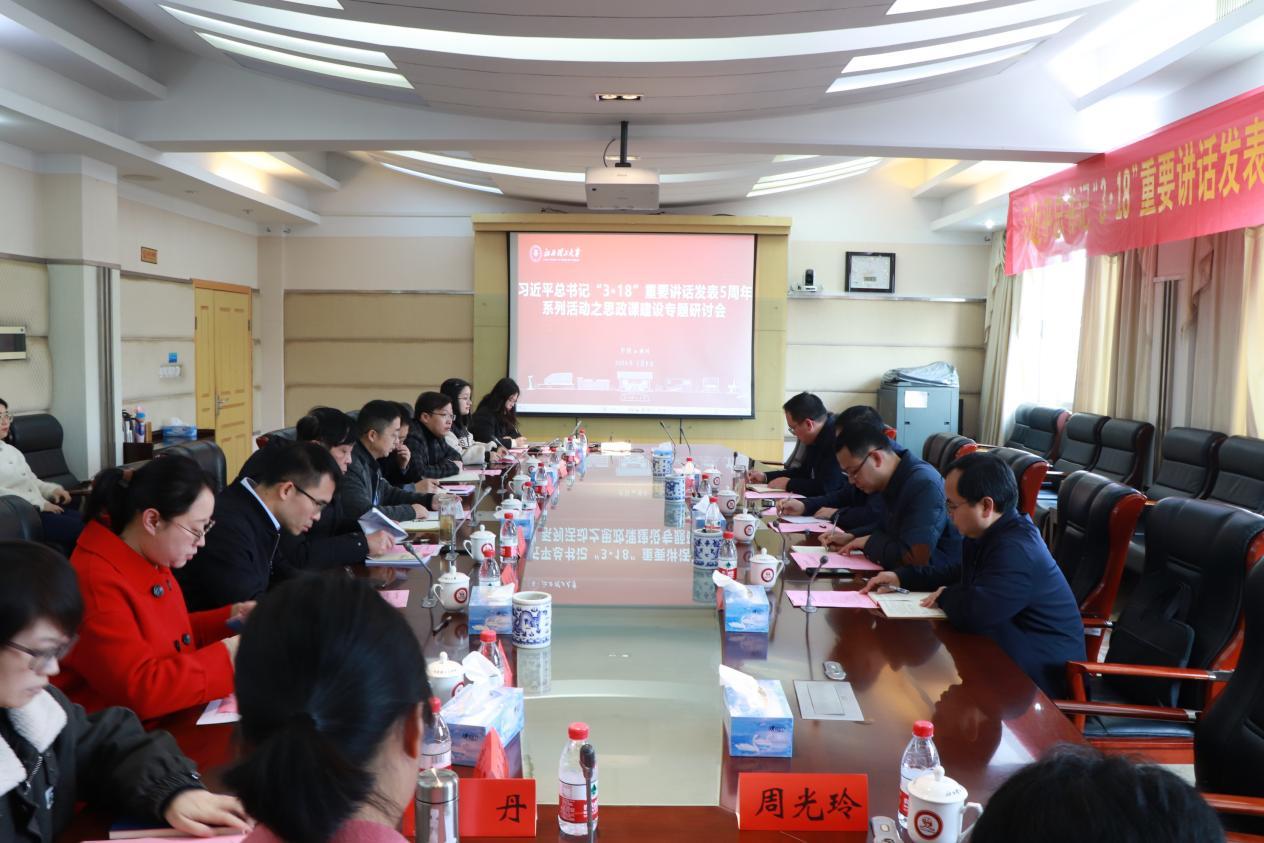 本网讯 3月8日上午,习近平总书记“3·18”重要讲话发表5周年系列活动之江西理工大学思政课建设专题研讨会在红旗校区原行政楼四楼第二会议室举行。校党委书记杨斌出席会议并讲话。党委宣传部、人事处、教务处等部门相关负责人,马克思主义学院领导班子成员、党委委员、教研室主任、支部书记及教师代表参加会议。会议由马克思主义学院院长邓显超主持。