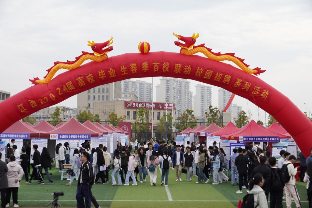 本网讯 3月28日,江西省2024届高校毕业生春季百校联动校园招聘系列活动暨江西理工大学2024届毕业生宏志助航春季就业洽谈会在三江校区田径场举行。本次招聘会邀请并对接16个地区组团招聘,包含深圳、宁波、厦门、泉州、铜陵、海盐、黄石、台山、南昌、新余、鹰潭、吉安、赣州等地共400余家企业,为毕业生提供了近14000个就业岗位,赣州区域近8000名毕业生进场参会。