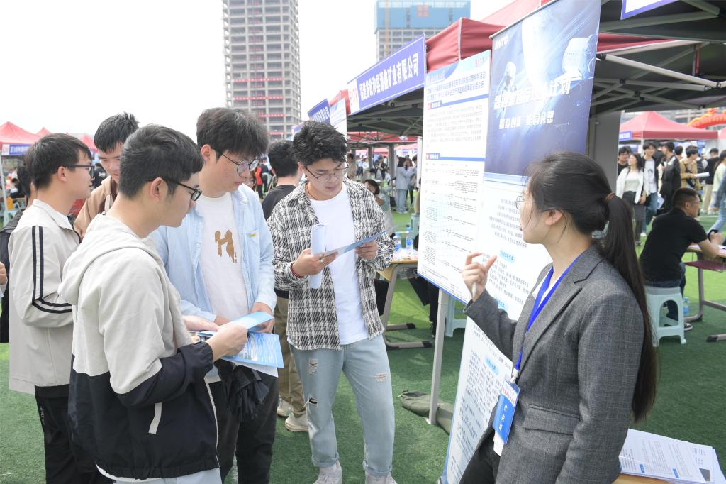 莘莘学子熙来攘往,现场气氛热烈。会场给每个企业都设置了信息展示区,通过海报、展板等形式展示各招聘单位的招聘信息和企业文化,方便求职者了解相关信息。操场上各院系毕业生手持简历,穿行在各个企业的展台间,寻觅最适合自己的职位。各个招聘摊位前人头攒动,招聘人员热情洋溢地与求职者交流,耐心解答求职者的疑问。
