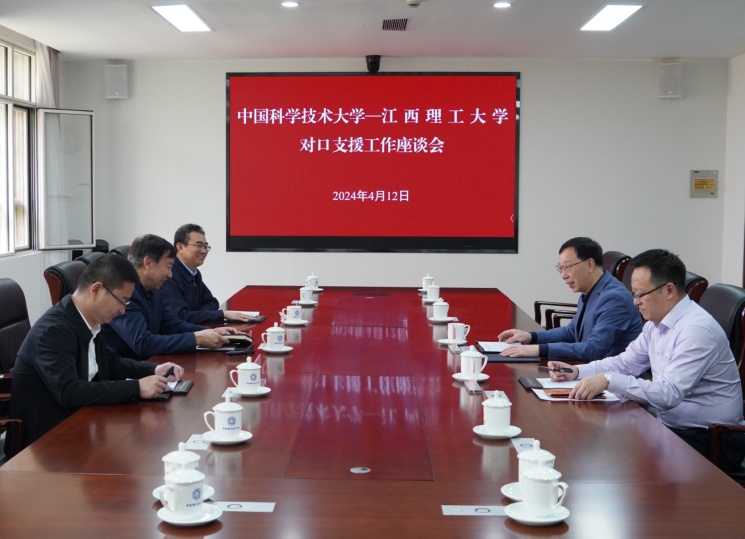 本网讯  4月12日,校党委书记杨斌前往中国科学技术大学对接对口支援工作。中国科学技术大学党委书记舒歌群、党委副书记邓建松、党政办公室主任王伟、帮扶办公室主任何昊华及完美online(中国)党委(校长)办公室主任熊淑华先后参加交流活动。