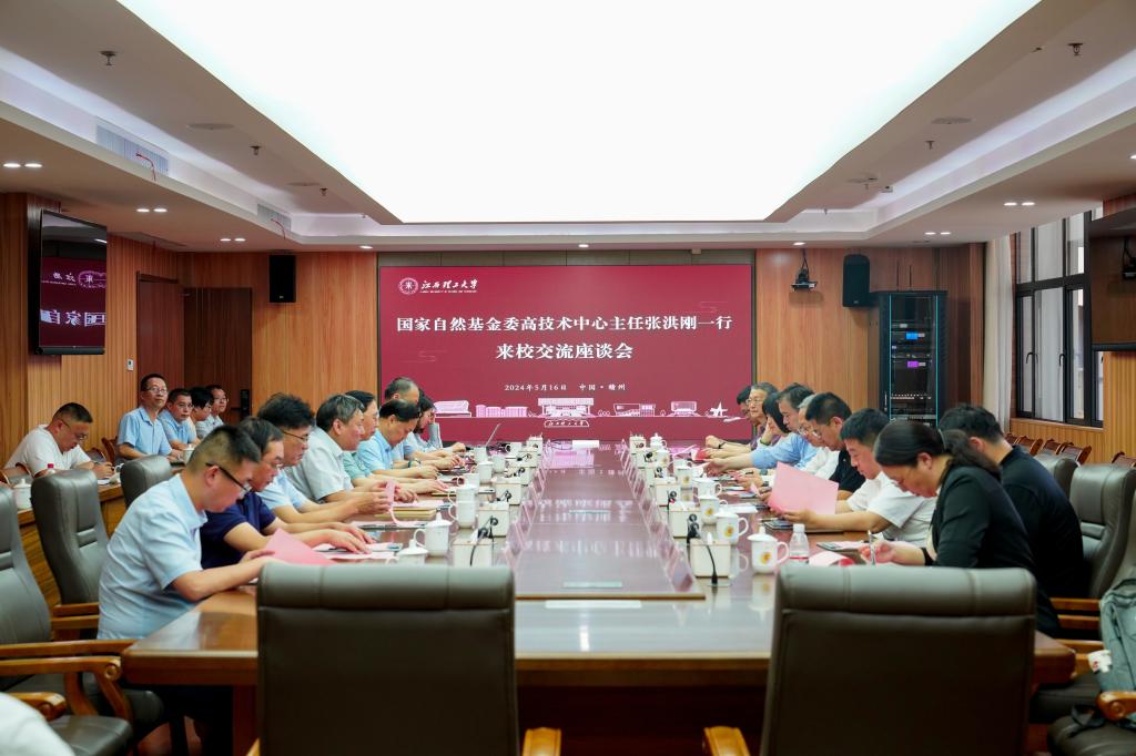 本网讯 5月16日下午,国家自然基金委高技术中心主任张洪刚一行来校调研科技发展工作。省科技厅党组成员、副厅长陈金桥及市科技局、赣县区政府办一行陪同调研,并在三江校区濂溪楼2号会议室召开座谈会。校党委书记杨斌,校党委副书记罗仙平,校党委常委、副校长唐云志出席会议,完美online(中国)相关部门、学院负责人参加会议。