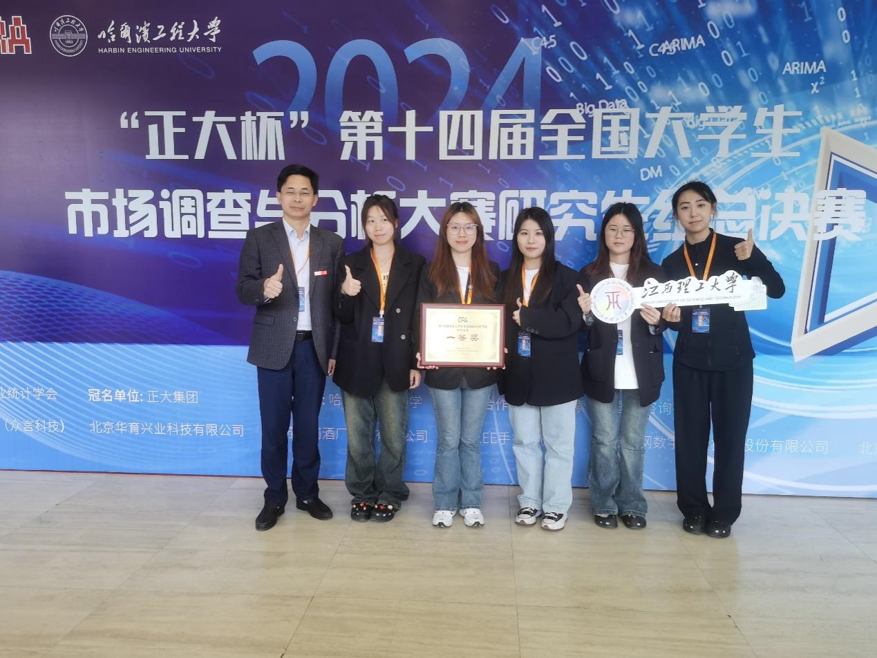 本网讯  5月19日,由教育部高等学校统计学类专业教学指导委员会、中国商业统计学会共同主办的“正大杯”第十四届全国大学生市场调查与分析大赛(研究生组)总决赛在哈尔滨工程大学圆满落幕,完美online(中国)在本次赛事中实现国赛一等奖的历史性突破,全国一等奖及国奖总数均列江西省第一。