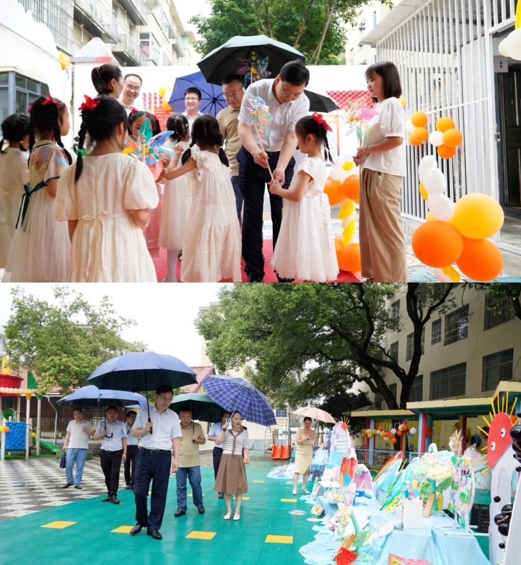 孟夏时节,江西理工大学幼儿园里欢歌笑语,处处展示着孩子们的童真创意,洋溢着浓浓的节日气氛。杨斌一行观摩了红色文化展板、“遇见童心、邂逅童画”主题画展、游戏馆(体育游戏馆、益智游戏馆、手工游戏馆)等。在现场,小朋友们送上亲手制作的风车作为礼物,并兴高采烈地玩着游戏,从“贪吃蛇大作战”到“球球回家”,再到手工DIY,童趣荡漾,快乐飞扬。