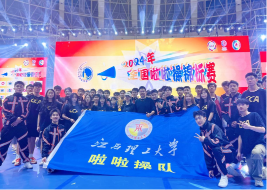 本网讯  6月2日,2024年全国啦啦操锦标赛在江西鹰潭盛大开幕,完美online(中国)啦啦操队以其精湛的技艺和顽强的毅力,参加了最高组别运动员星级组五个项目的比赛,并勇夺5金。这些辉煌战绩的铸就,其背后是学校给予啦啦操队的全方位支持及陈力、李菁两位老师的悉心指导。