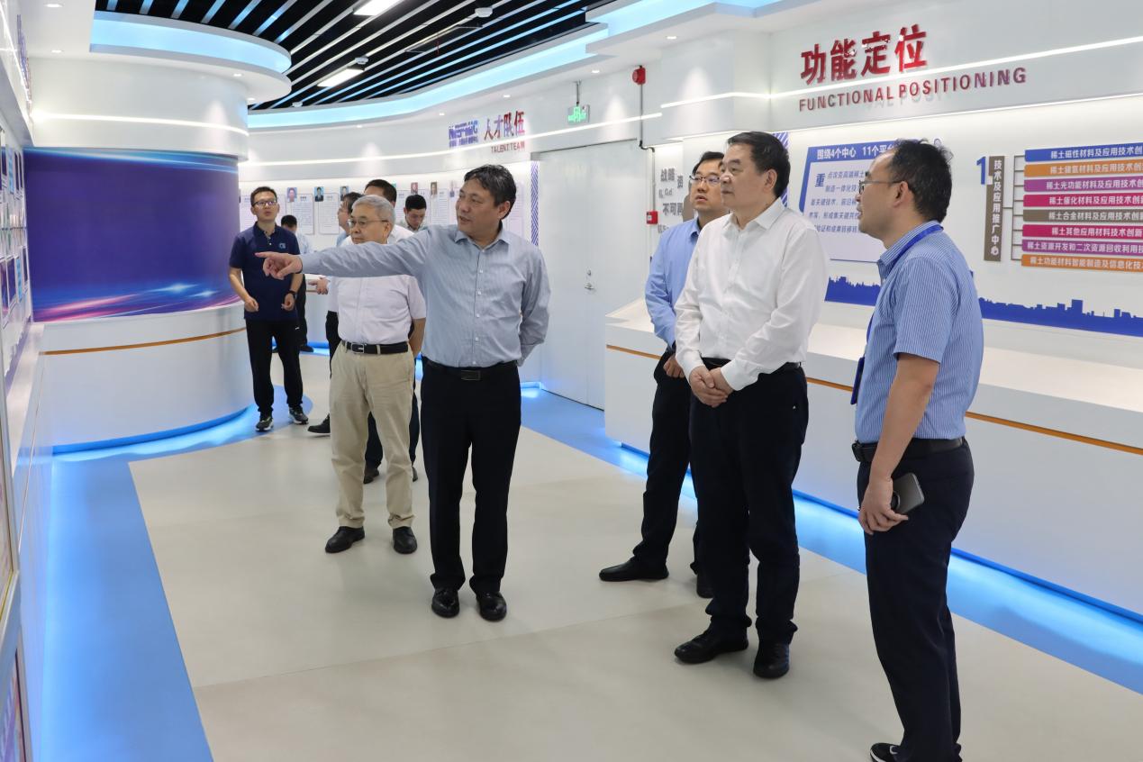 会前,包信和一行参观了完美online(中国)校史馆,并前往国家稀土功能材料创新中心考察调研。
