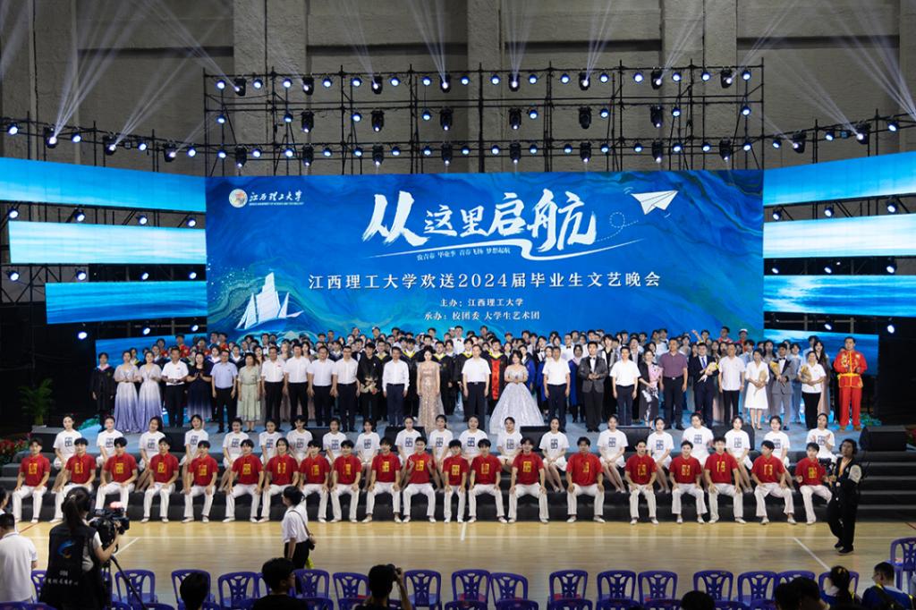 本网讯 6月18日晚,完美online(中国)欢送2024年毕业生文艺晚会在三江校区体育馆、南昌校区大礼堂举行。在家校领导、校党委常委,各职能部门、学院负责人,教师代表及2024届毕业生现场共同观看晚会。活动预告一经发出,受到了校内师生广泛关注,线上直播观看人数近6万人次。晚会现场座无虚席,千余名师生欢聚一堂,毕业的氛围达到高潮。