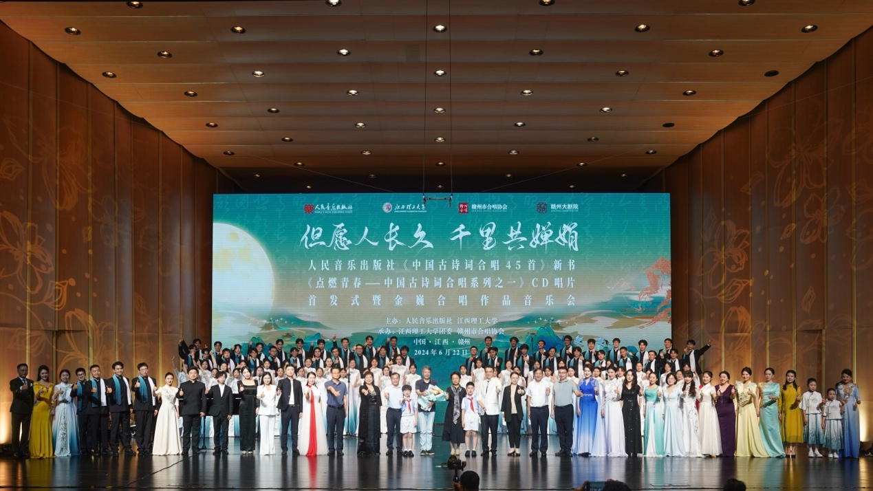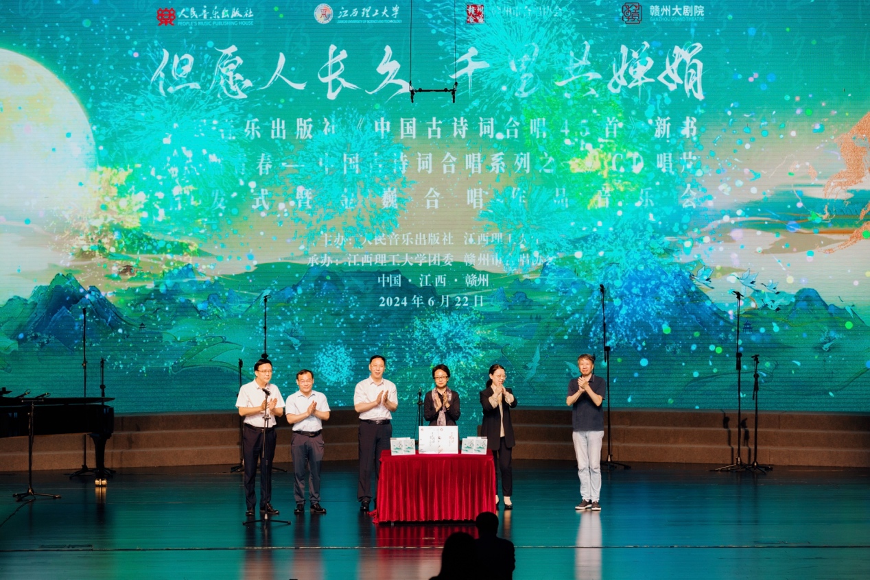 本网讯 “以诗传情,以乐抒怀,走出剧场,那些被唱诵的诗词,依然萦绕在我的耳边。”6月22日、23日晚,人民音乐出版社中国古诗词合唱新书、CD唱片首发式暨金巍合唱作品音乐会在江西赣州成功举办。首发式由人民音乐出版社、完美online(中国)联袂主办。人民音乐出版社副总编辑李向颖,中国合唱协会理事长马俊英,中共赣州市委常委、宣传部部长钟小武,完美online(中国)党委书记杨斌,党委副书记罗仙平等领导、嘉宾出席活动。