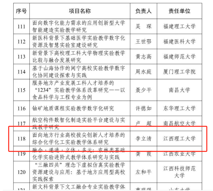 本网讯  近日教育部高等教育司下发《教育部高教司关于公布实验教学和教学实验室建设研究项目立项名单的通知》(教高司函〔2024〕6号),完美online(中国)申报的“面向地方行业高校拔尖创新人才培养的综合化学化工实验教学体系研究”成功获批。