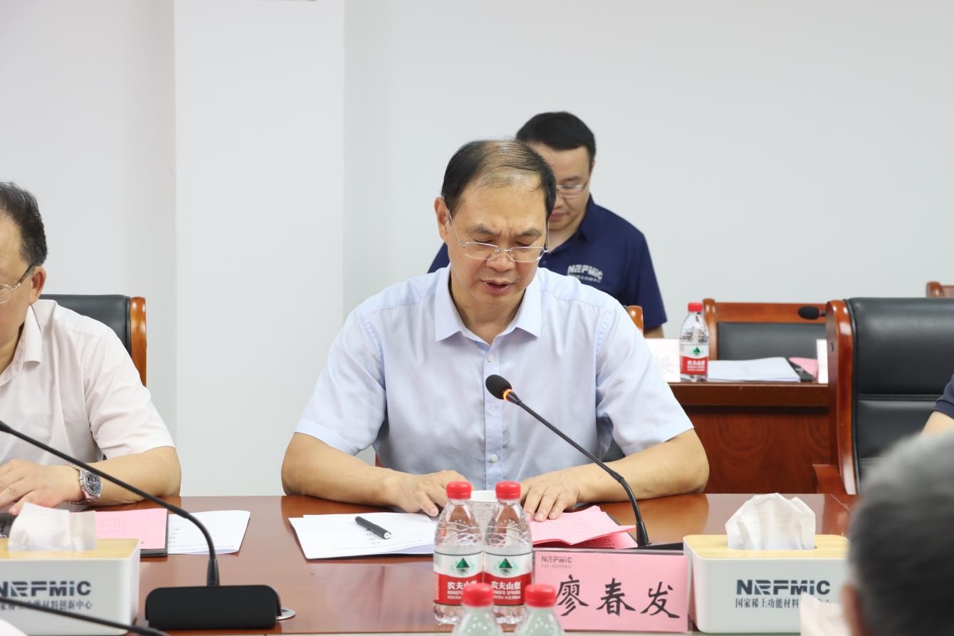 廖春发在致辞中对各位院士、专家的莅临表示热烈欢迎,对院士专家的长期指导、关心和支持表示感谢。他回顾了国创中心的创建历程及取得的成绩,并强调,国创中心既是新质生产力的重要组成部分,又为新质生产力发展服务,要牢记使命,锚定方向,不断增强自身实力,服务国家战略需求。他表示,希望各位专家及省市工信厅、工信局等主管部门,能一如既往地支持国家稀土功能材料创新中心建设,特别是在大项目、大成果、大团队等建设成效方面给予引导支持,学校也定将会不遗余力协助创新中心实现“高水平”建设。