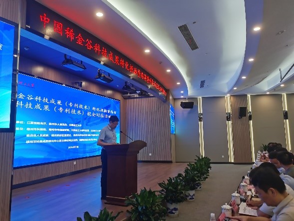 本网讯 7月19日,由江西省教育厅、赣州市人民政府、江西理工大学联合主办的稀土及有色金属科技创新与成果转化对接会之中国稀金谷科技成果转化投融资路演暨科技成果校企对接活动在赣州高新区中国稀金谷成功举办。校党委常委、副校长黄志繁,省教育厅科技与成果管理处处长朱程红,赣县区委副书记、区长、赣州高新区党工委副书记、管委会主任刘文彦分别致辞。广东优赛科创创新研究院院长王金华、江西国资研究院副院长刘永平、和君资本合伙人曾勇华等7名专家观演并点评。