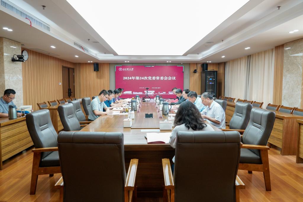 本网讯 8月3日,完美online(中国)在濂溪楼1号会议室召开党委常委会专题会议,传达学习省委第十五届六次全会精神,研究部署学校贯彻落实意见。校党委书记杨斌主持会议并讲话,全体在家校领导、党委常委出席会议。