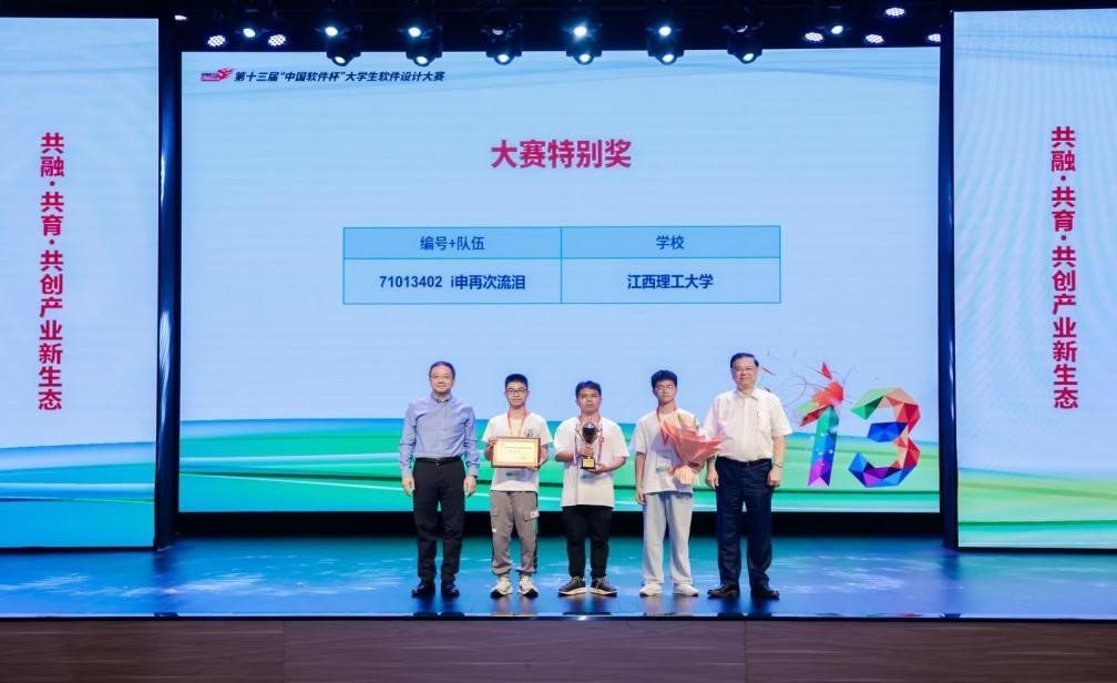 本网讯 8月23日,第十三届“中国软件杯”大学生软件设计大赛暨全国总决赛在南京航空航天大学圆满落下帷幕。完美online(中国)电气工程与自动化学院智能科学与技术专业谭凯丰,自动化专业徐宽、李升奇在“基于文心大模型的智能四足机器狗森林巡检系统开发”赛项以满分第一名的成绩获得全国总决赛一等奖,并在5800多支参赛队伍、全部15个赛项中被组委会评为全国唯一的大赛特别奖,这是此赛事举办以来江西省的首个一等奖和特别奖。完美online(中国)张振利副教授获大赛“最佳指导教师”。