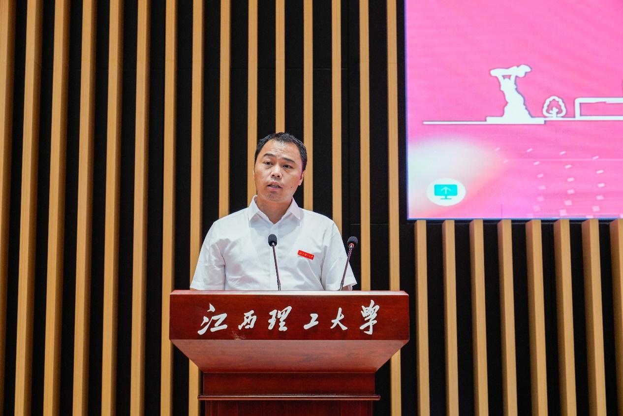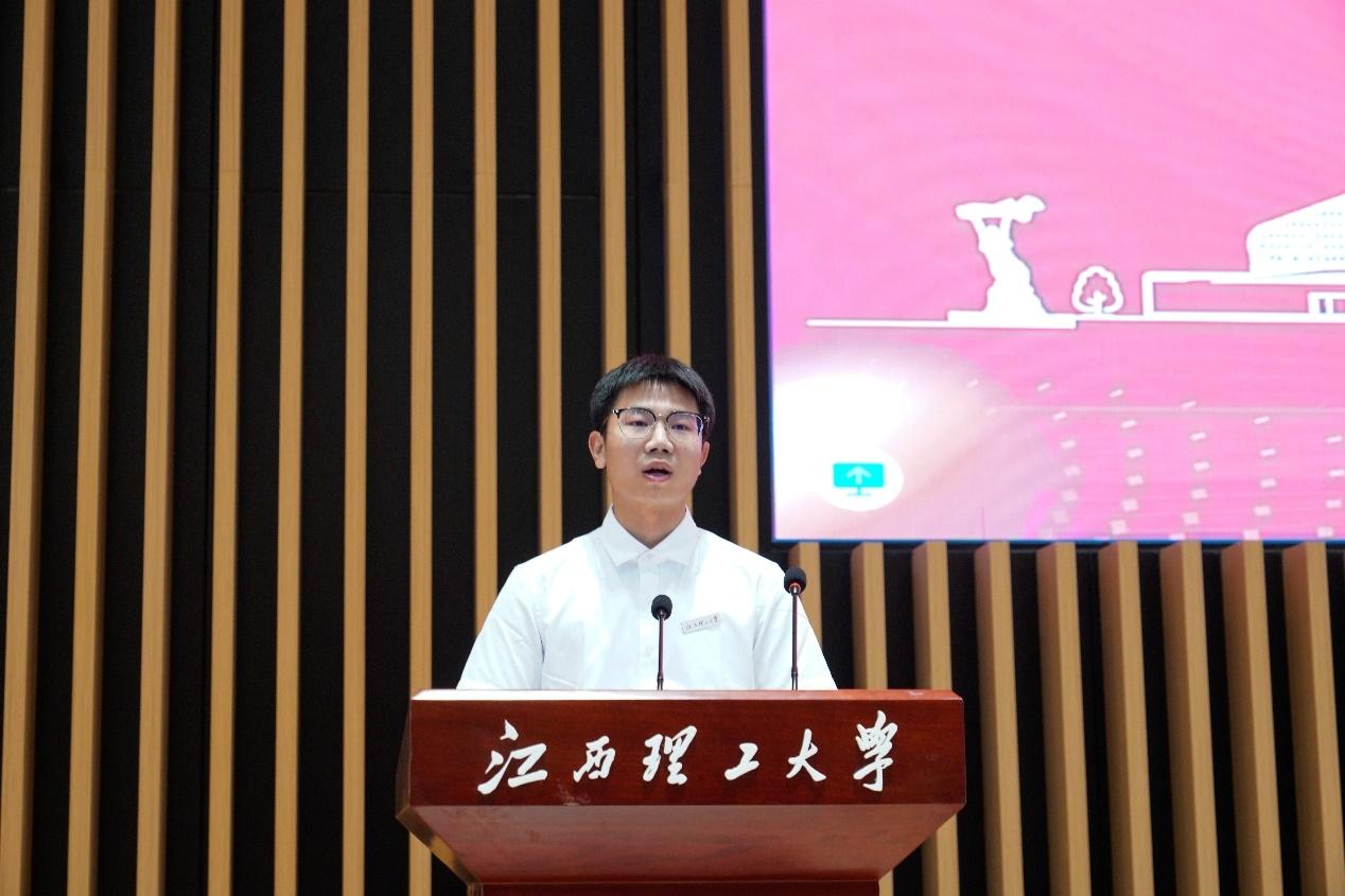 教师代表,江西省赣鄱俊才计划-高校青年领军人才、江西省杰出青年基金获得者、江西理工大学清江青年支持计划人才,材料科学与工程学院副院长张雪辉老师发言,他从立德树人、学位点建设、科技创新三方面分享了他教书育人的体会。一是要始终坚持立德树人根本任务,努力做学生为学、为事、为人的大先生;二是聚焦“双一流”建设,积极谋划推动学位点建设工作;三是坚持“四个面向”努力提升科技创新能力。他表示,要坚持以德立身、以德立学、以德施教,以国家一流专业为依托持续提升人才培养质量,努力造就更多的卓越工程师、大国工匠、高技能人才。