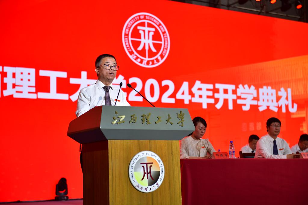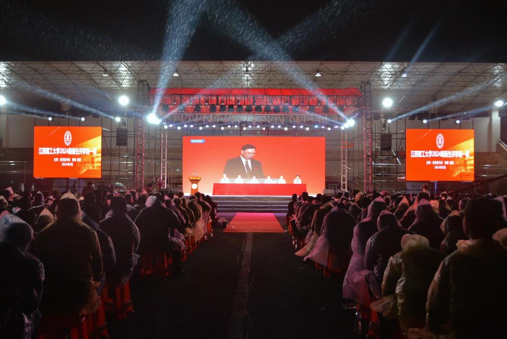 校党委书记杨斌以《学在江理,做照亮未来的光》为题为新生作开学第一课,向同学们介绍了学校的深厚历史、优良作风、突出成绩和美好环境,并提出四点希望与刚入学的2024级新生共勉。