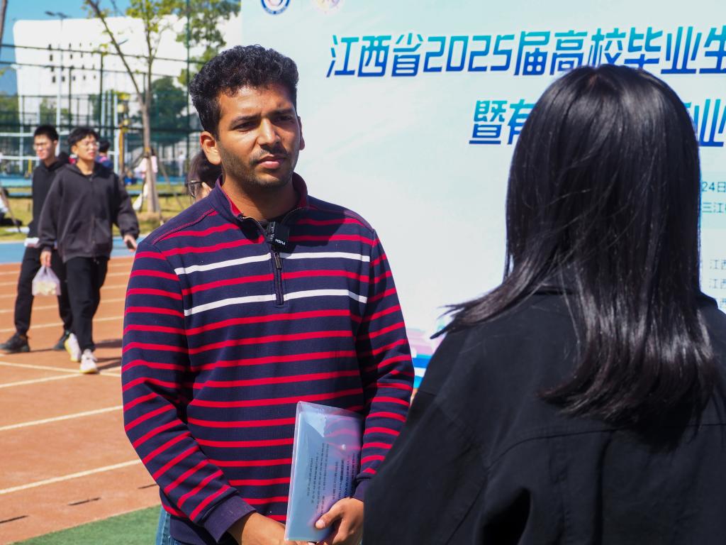 来自地质工程的2023级硕士国际生穆常青也积极参与了招聘会,从一开始他便怀揣着在中国长期发展和就业的强烈愿望。谈到在中国就业的国际友人优势时,他认为主要取决于个人优势,双语能力尤其是中文能力会带来优势。在中国就业会面临到一些困难,主要是习俗差异,但他深知这是需要克服的。作为地质工程专业的他,对与地质、矿业相关且有海外项目的企业和岗位兴趣浓厚,学校每年众多有色金属相关公司前来招聘,为他就业带来了很大优势。
