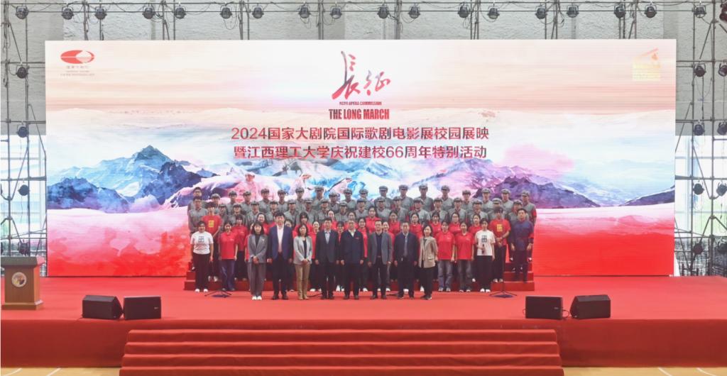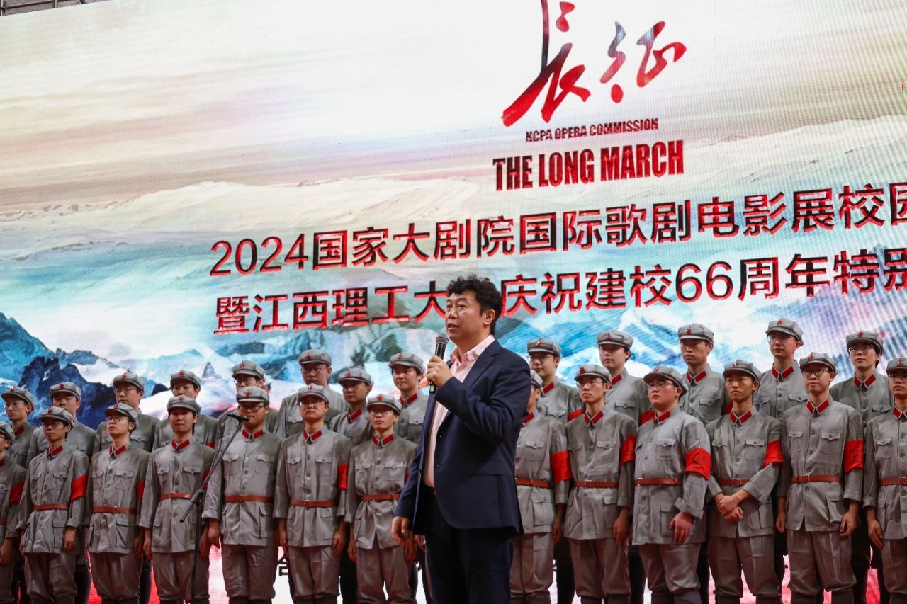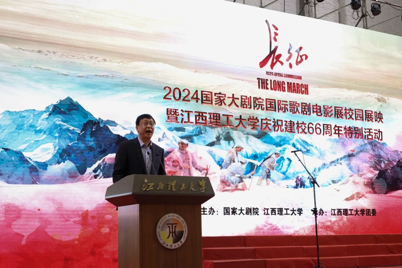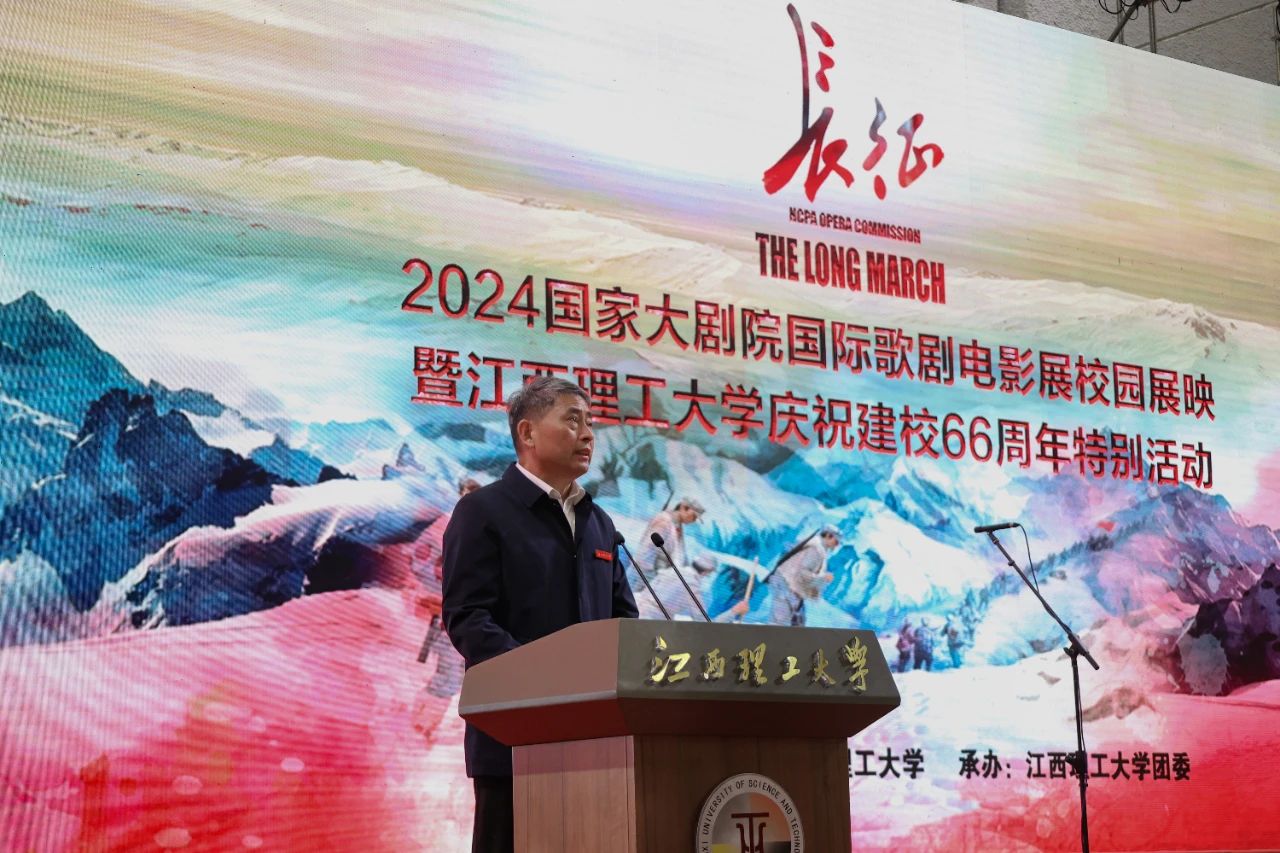 国家大剧院副院长马荣国在致辞中表示,江西理工大学建校66年来,扎根赣南红土地,培养了一大批具有创新能力的人才,为国家的发展做出了重要贡献。在纪念红军长征出发90周年之际,国家大剧院原创歌剧电影《长征》第一次走进江西,来到长征出发地,走进江西理工大学,非常有纪念意义。展望未来,国家大剧院愿同江西理工大学一道,共同推动学校美育发展再上台阶。