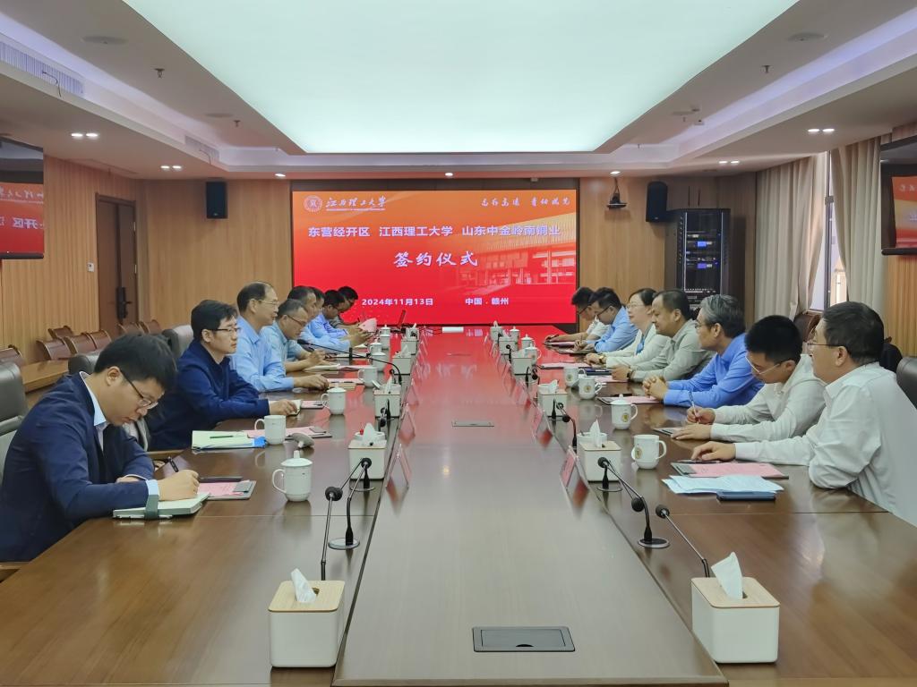 刘军对校企双方给予东营经济技术开发区发展的关心和支持表示感谢,对江西理工大学办学水平、人才培养、服务有色金属行业等方面取得的成绩表示赞赏。江西理工大学是我国有色金属工业和钢铁工业重要的人才培养和科研基地,山东中金岭南铜业有限责任公司是东营经济技术开发区有色金属行业龙头企业,三方之间的合作目标一致、合作基础扎实、合作空间广阔、合作领域广泛。他表示,东营经济技术开发区将全力打造优良的合作环境、一流的服务阵地、有力的政策支撑,推动三方打造校政企深度务实合作的新典范。
