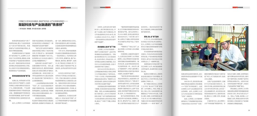 耕耘数载,江西理工大学的创新成果正源源不断地输送到创新需求主体,转化为现实生产力、产业链 、创新链、人才链融汇交织,释放出前所未有的协同效应,科技创新与产业创新深度融合之路越走越宽。