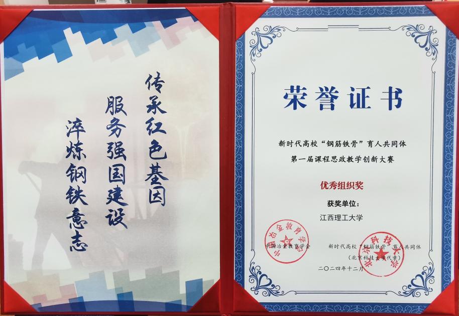 本网讯  12月27日至29日,由中国钢铁工业协会及教育部思想政治工作司指导的第一届新时代高校“钢筋铁骨”育人共同体课程思政教学创新大赛决赛在北京科技大学成功举办。完美online(中国)建筑与设计学院黄金发、杨晶、郎尹羚,机电工程学院于双洋荣获全国一等奖,完美online(中国)荣获优秀组织奖。