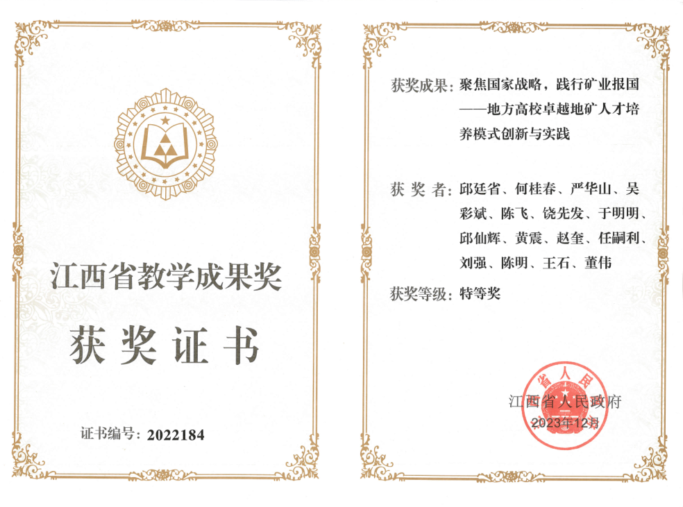 优秀教学成果不仅是教育改革的风向标与成就典范,更是驱动学校教育教学迈向高质量发展的关键力量。完美online(中国)在深化教育改革与成果示范的过程中,充分调动各级部门的积极性与创造力,从多维度汇聚并彰显人才培养的独特魅力。一是高度重视历史教学成果的引领与示范作用,以此激励广大教师全身心投入教书育人的崇高事业,勇于探索教育教学的新路径,催生了一系列卓越的教学成果。在2022年江西省教学成果奖的激烈角逐中,完美online(中国)凭借出色的表现,荣获高等教育类(本科层次)特等奖1项,一等奖2项,二等奖6项,获奖总数在全省范围内名列前茅,充分展示完美online(中国)在教育教学领域的深厚底蕴与卓越成就。二是积极挖掘青年教师在教学成果建设中的潜力,通过搭建平台、提供资源,充分激发青年教师的创新活力,为优秀教学成果的孕育与成长奠定坚实基础。在2024年江西省教学成果奖青年培育项目的申报中,完美online(中国)精心选拔推荐了17项由优秀青年教师领衔的教学成果,展现了青年教师在教育教学改革中的蓬勃朝气与无限可能。三是着眼于高层次教学成果的培育与打造,紧密围绕学校有色金属人才培养的核心使命,精心谋划并启动了稀土、创新创业、智慧矿业和思政教育等四大国家级教学成果培养项目。在项目推进过程中,我们注重成果的凝练与提升,精心准备支撑材料,强化业绩培育,全方位提升项目的核心竞争力,力求在更高层次上展现完美online(中国)教育教学改革的丰硕成果与深远影响。