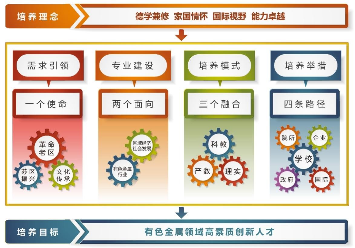 学校积极响应并深入实施高校学科专业的动态调整策略,通过多元化措施与全面发力,不仅强化了专业建设的规范化管理,还显著加大了专业动态调整的力度,从而实现了专业服务国家战略需求与区域经济发展的高度契合。一是围绕有色金属产业链人才培养加强顶层设计,突显学校办学特色。学校先后制定并发布了《江西理工大学服务传统产业优化升级和战略性新兴产业发展实施方案》及《江西理工大学关于进一步加强稀土领域一流学科建设以更好服务稀土产业高质量发展的若干意见》等一系列指导性文件。同时,还制定了《江西理工大学普通高校本科专业结构优化调整专项行动方案》等相关制度,并对《江西理工大学本科专业设置与建设管理办法》进行了修订,从而在制度层面为有色金属产业链的人才培养提供了坚实的保障。二是打造稀土领域特色专业链,服务有色金属行业发展。通过围绕有色金属领域,学校构建了一系列涵盖地质工程、采矿工程、矿物加工工程、材料物理、材料化学、无机非金属材料、金属材料工程、冶金工程、化学工程与工艺、机械工程、环境工程、法学以及信息科学等专业的人才培养链。同时,学校积极与赣州、鹰潭等有色金属产业的核心区域进行对接,建立了产业学院和产业研究院,探索出了校政企协同育人的新模式。三是优化学科专业群,服务江西数智创新人才培养。围绕矿业工程、冶金工程和材料科学与工程这三个一流学科,学校形成了绿色矿业、现代冶金、先进材料、智能装备、稀土领域以及人文社科等六大本科专业群。这些专业群不仅多维度地对接并落实了江西省的“1269”行动计划,还通过撤销9个本科专业、压减停招19个本科专业的方式,使得招生专业中与江西经济社会发展紧密相关的学科专业比例达到了90%以上。