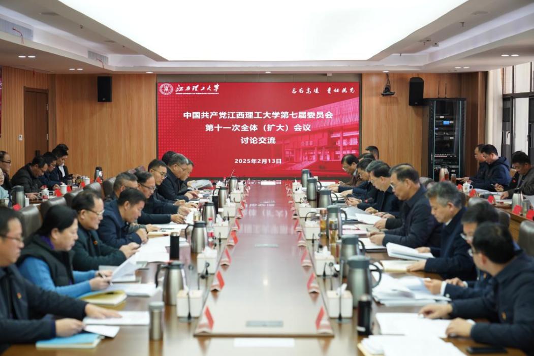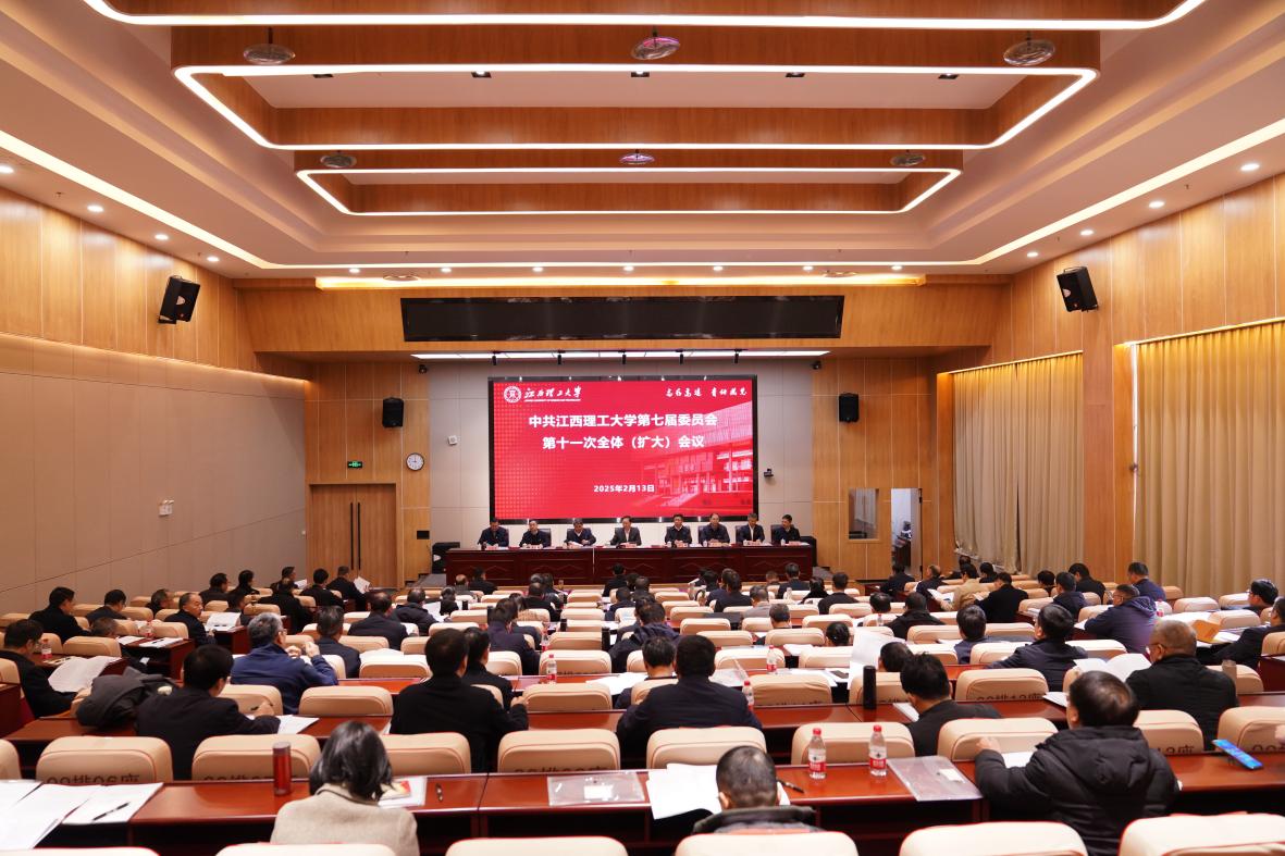 本网讯 2月13日-14日,中共江西理工大学第七届委员会第十一次全体(扩大)会议在三江校区启航会议中心1号厅召开。会议以习近平新时代中国特色社会主义思想为指导,传达学习中央、省委相关会议和重要文件精神,讨论和审议校党委常委会工作报告、《中共江西理工大学委员会关于深入贯彻落实党的二十届三中全会精神 进一步全面深化改革 奋力创建“双一流”大学的实施意见(草案)》,研究部署2025年重点任务,为江理朝着创建国家一流学科大学的目标不断奋进打下坚实的基础。