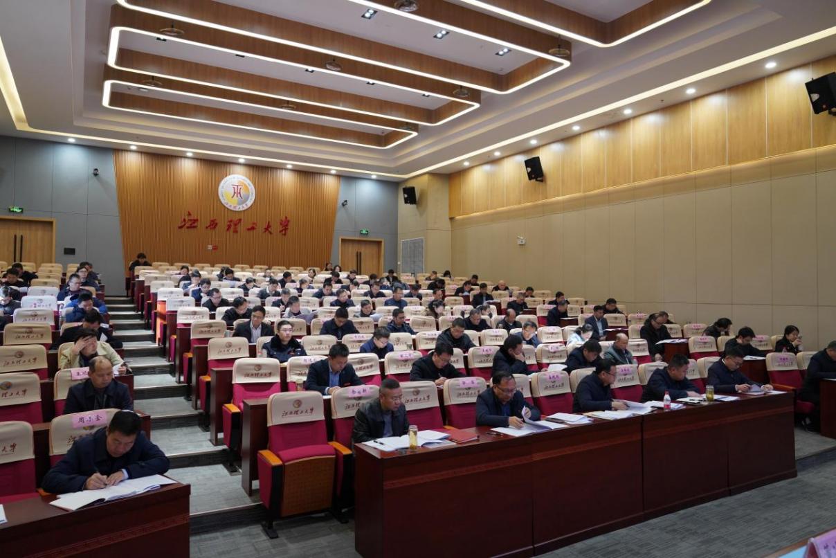 会议强调,2025年是教育强国全面布局、高位推动之年,是学校“十四五”规划收官之年。学校将以“力争早日建成世界一流学科大学”为目标,守牢“安全和廉洁”两个底线,坚持“人才强校、质量立校、开放兴校”三大战略,突出“信息赋能的教育体系改革、贡献导向的科技组织重构、数据驱动的治理体系优化、自信开放的国际合作格局”四项改革,落实“党的建设引领事业发展、统一战线凝聚发展合力、优质服务支撑学校发展、高效协同保障校园安全、弘扬正气激发干事活力”五个保障,推进“忠诚江理、卓越江理、幸福江理、平安江理、团结江理、勤廉江理”六大行动,团结带领广大师生奋力拼搏,持续推进教育科技人才体制机制一体改革,为奋力谱写中国式现代化江西篇章贡献新的江理力量。
