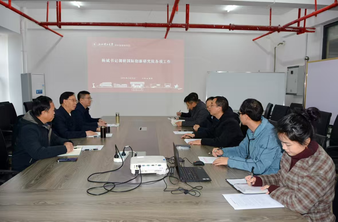 杨斌对国际创新研究院一直改革创新、担当作为、团结奋斗,在教学、科研、科技成果转化等方面取得的成绩给予充分肯定。他强调,在充分看到学院发展的同时,也需要认真研究其未来面临的竞争和外部挑战,要做好顶层设计,为“十四五”的收官和新的开始做好准备。同时,他对国际创新研究院提出了四点要求:一是要加强政治引领,深入学习习近平新时代中国特色社会主义思想,做到政治坚定,立志科创报国;二是希望各研究团队在追求更高目标的同时,加强师德师风建设,加大廉政建设的力度;三是要加强队伍建设,加强高层次人才引进和培养,统筹更多资源;四是研究团队要围绕稀土领域,致力于创建世界一流学科,同时加强国际交流,引进海外优秀人才。杨斌表示,国际创新研究院不仅是研究平台,更是未来教育国际化的重要载体,要立足新阶段,树立新目标,不断勤奋努力,成为展示江西理工大学办学理念的重要窗口,更好助力学校发展。