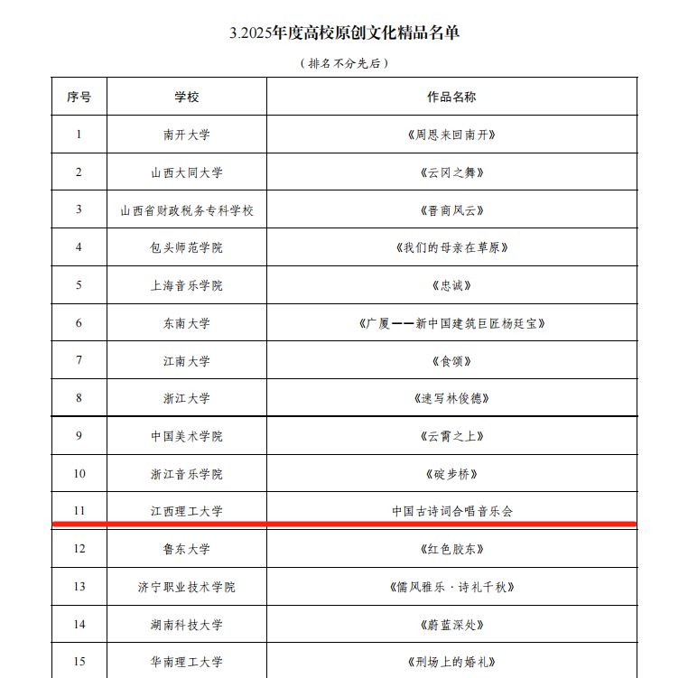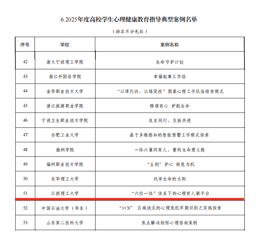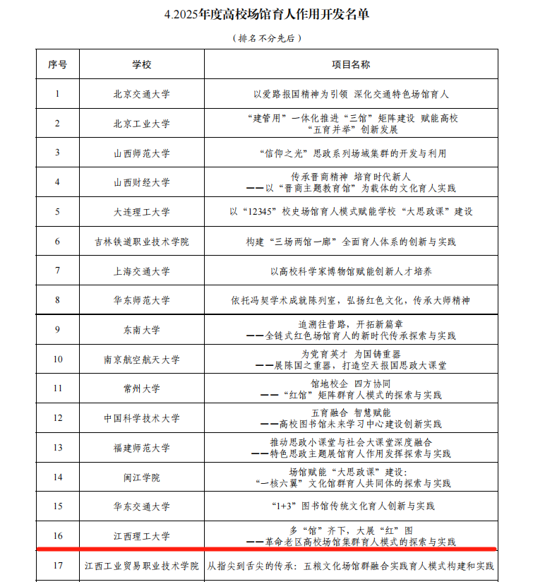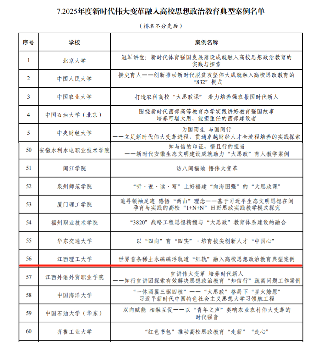 本网讯  近日,教育部公布了2025年度高校思想政治工作质量提升综合改革与精品建设项目遴选结果。完美online(中国)共4个项目入选,其中,“中国古诗词合唱音乐会”项目入选2025年度高校原创文化精品,“多‘馆’齐下,大展‘红’图——革命老区高校场馆集群育人模式的探索与实践”入选2025年度高校场馆育人作用开发,“‘六位一体’体系下的心理育人新平台”入选2025年度高校学生心理健康教育指导典型案例,“世界首条稀土永磁磁浮轨道‘红轨’融入高校思想政治教育典型案例”入选2025年度新时代伟大变革融入高校思想政治教育典型案例,入选总数并列全省第一。