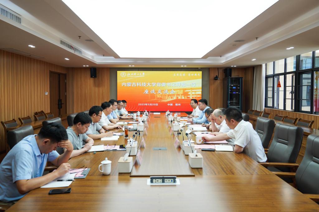 本网讯 5月20日上午,内蒙古科技大学党委书记呼和一行来访完美online(中国),并在三江校区濂溪楼1号会议室召开座谈交流会。校党委书记杨斌,党委常委、副校长熊志华出席会议,各相关部门负责人参加会议。