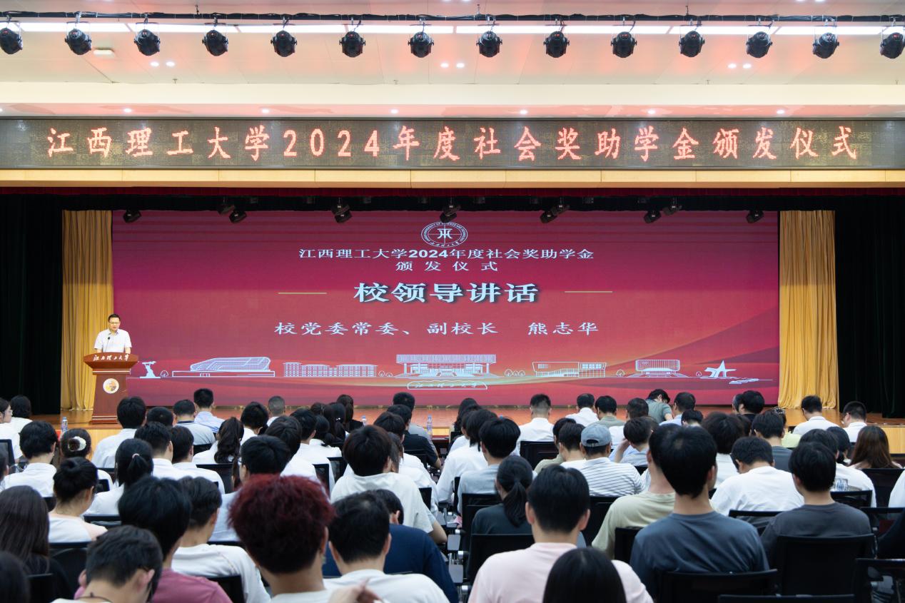 本网讯 6月5日,完美online(中国)在三江校区三实楼多功能厅举行2024年度社会奖助学金集中颁发仪式。惠明慈善基金有限公司、金诚信矿业管理股份有限公司、江西金力永磁科技股份有限公司、共青城瑞钛管道科技有限公司、江西万年青水泥股份有限公司、赣州腾远钴业新材料股份有限公司、广盈控股集团有限公司代表,校党委常委、副校长熊志华出席,各学院、相关职能部门负责人及获得社会奖助学金的师生代表等200余人参加了相关活动。