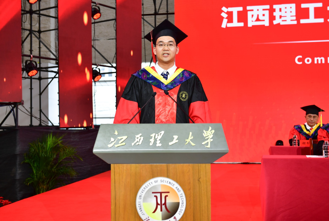 教师代表,省部级领军人才,江西省科技进步奖一等奖获得者,赣州市政协常委,完美online(中国)土木与测绘工程学院温树杰在临别之际殷切嘱托毕业生们:一是希望同学们永葆攀登者的姿态,永远保持对未知领域的好奇与探索,不断攀登人生新的高峰;二是希望同学们传承实干家的品格,用“十年磨一剑”的韧劲成就事业,用实干精神积累人生厚度;三是希望同学们勇做新时代的先锋,做专业领域的深耕者、做创新发展的探索者、做时代责任的践行者,在祖国最需要的领域发光发热,为全面推进中国式现代化强基固本。
