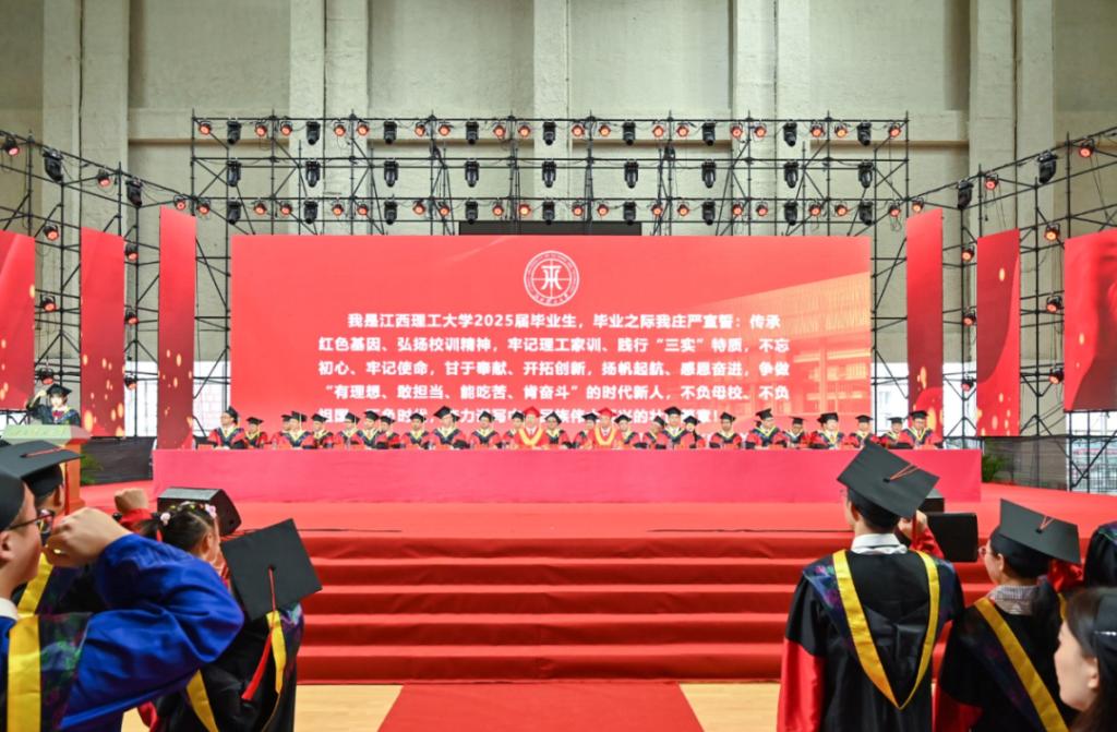 典礼上,校党委副书记徐志峰宣读了《江西理工大学关于准予胡雨婷等6210名2025届第一批普通高等教育本科毕业生毕业的决定》《江西理工大学关于2025年夏季准予邓攀等1566名研究生毕业的决定》《江西理工大学学位评定委员会关于授予胡雨婷等6270名2025届普通高等教育毕业本科生学士学位的决议》《江西理工大学学位评定委员会关于授予韩嘉雯等1537名2025年夏季毕业研究生硕士学位的决议》《江西理工大学学位评定委员会关于授予邓攀等37名夏季毕业研究生博士学位的决议》《江西理工大学关于授予时雨凡等520名同学“优秀毕业生”荣誉称号的决定》《江西理工大学校友会关于聘任李锦洋等234名2025届毕业生为校友工作联络员的决定》。