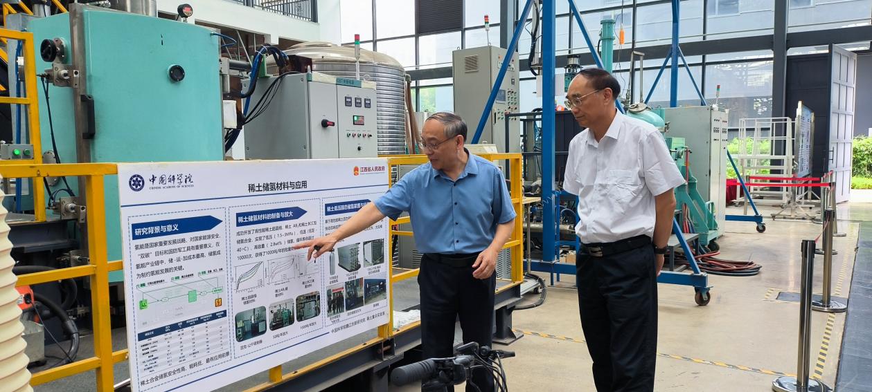 在中国科学院赣江创新研究院,齐涛陪同参观了科技展厅和工程试验中心,并详细介绍了研究院的建设历程、研究方向、人才队伍、科研成果等方面情况。他指出,双方长期以来保持着良好的合作关系,在资源共享、人才培养等领域成果显著,未来将以国家级科研平台共建为契机,强化教育、科技、人才合作,推动成果转化与人才联合培养,更好服务国家重大战略需求,产出更高水平科研成果。葛世荣对中国科学院赣江创新研究院长期以来的支持表示感谢,强调学校以建设稀土和关键矿产领域一流大学为目标,以服务江西主导产业为使命,大力建设稀土技术、未来材料和关键矿产三个融合创新中心,希望全面加强与中国科学院赣江创新研究院的合作,聚焦师资人才共享、平台共建、项目共研、成果共通,推动科教深度融合,共同为稀土产业高质量发展贡献力量。