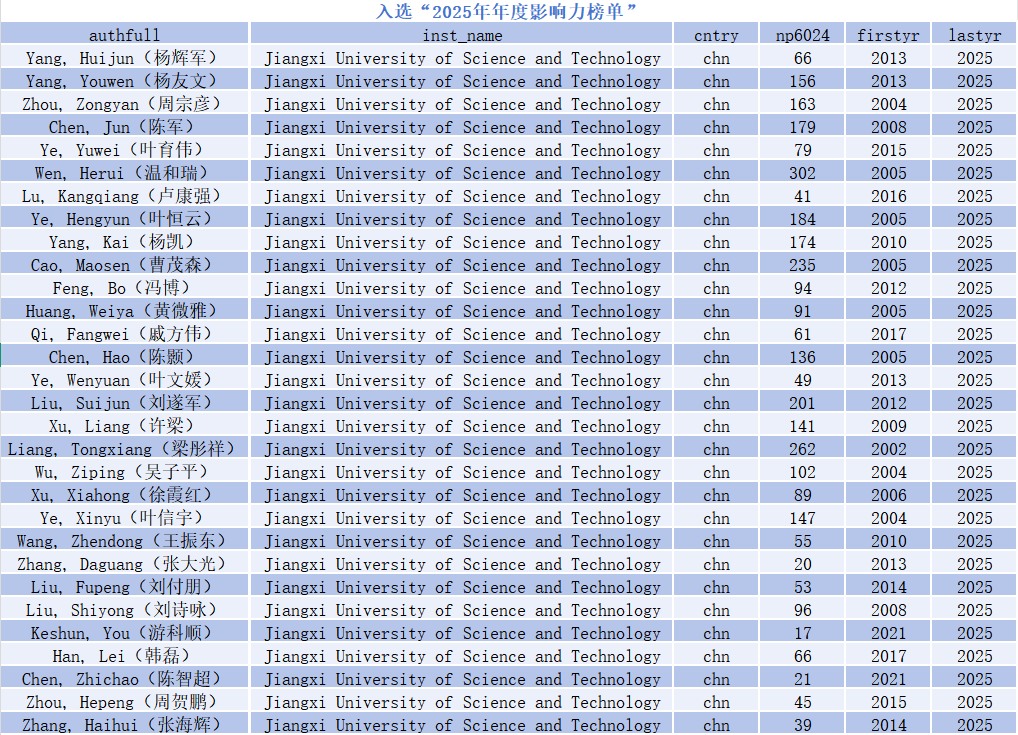 (2025年年度影响力榜单表格)