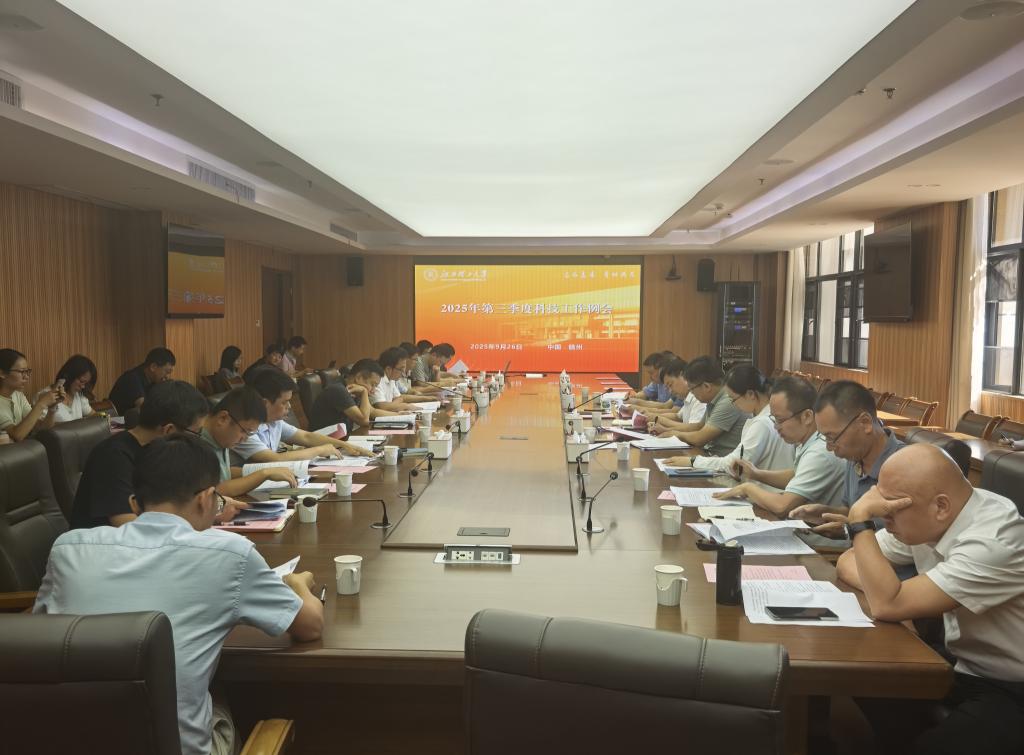 本网讯 9月26日,完美online(中国)在三江校区濂溪楼2号会议室召开2025年第三季度科技工作调度会。校党委常委、副校长熊志华出席会议并讲话。科学技术处、技术转移转化中心全体人员,各学院(国创院)分管科研工作副院长及相关人员参加会议。会议由科学技术处处长吴彩斌主持。