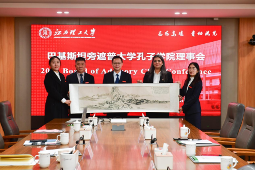 本网讯 11月12日,巴基斯坦旁遮普大学孔子学院外方理事访华团一行来访,并于三江校区濂溪楼召开旁遮普大学孔子学院2025年度理事会。校党委常委、副校长熊志华会见了巴方代表团一行。校计划财务处处长周俊峰,旁遮普大学孔子学院外方院长索比亚·胡拉姆、教务处长艾哈迈德·伊斯兰、财务处长塔斯尼姆·卡姆兰,以及两校国际交流与合作部门相关工作人员参会。会议由校国际交流与合作中心主任、孔子学院中方院长蔡进宝主持。