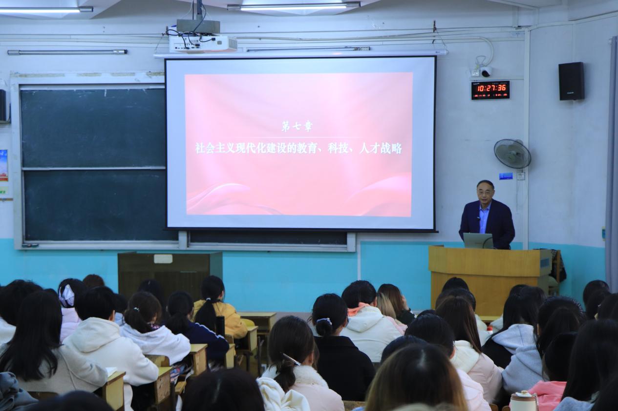 本网讯  在全校上下深入学习贯彻党的二十届四中全会精神、全面创建稀土及关键矿产领域世界一流大学之际,11月18日,中国工程院院士、校长葛世荣在红旗校区为学生讲授《习近平新时代中国特色社会主义思想概论》课。马克思主义学院相关师生现场听讲。